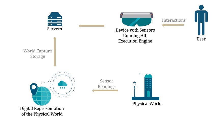 - MAR experience capture metadata (e.g., session dates, times, duration, geospatial position and orientation, hand positions, gaze direction, audio provided the user, photos taken or video viewed and captured)